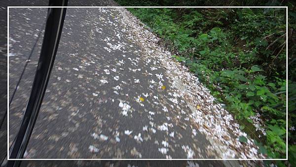 飄落的油桐花灑滿了道路二旁