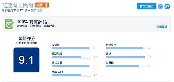 梅匠第一次展露在Booking的線上評價是平均9.1分
