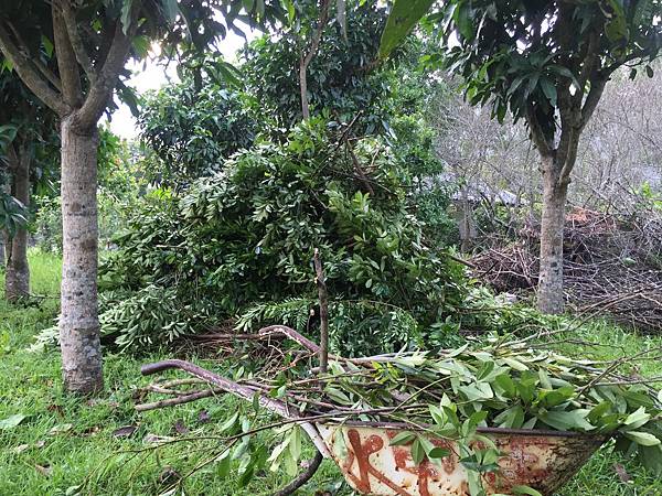 全倒的樹就鋸掉後移除、半倒的就扶正再輔以支架、散落四處的枝條落葉一一掃除