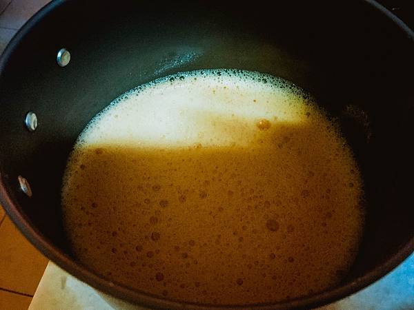 牛奶、沙拉油和奶油先隔水加熱